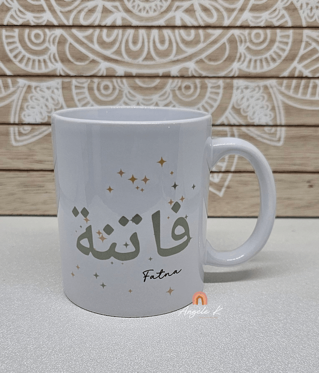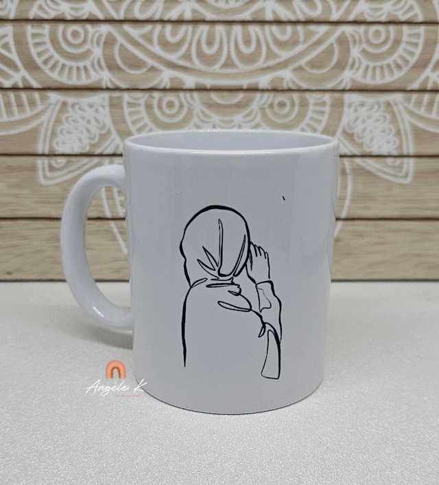 Un Mug en céramique personnalisé sur les faces thème silhouette hijab et prénom.
